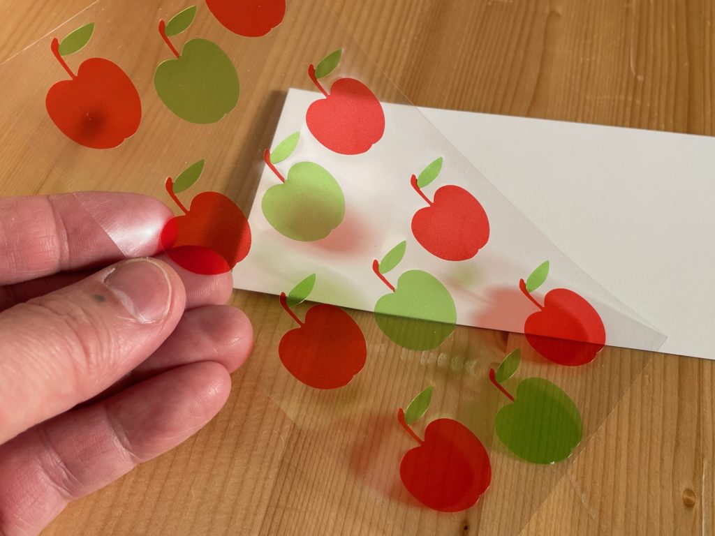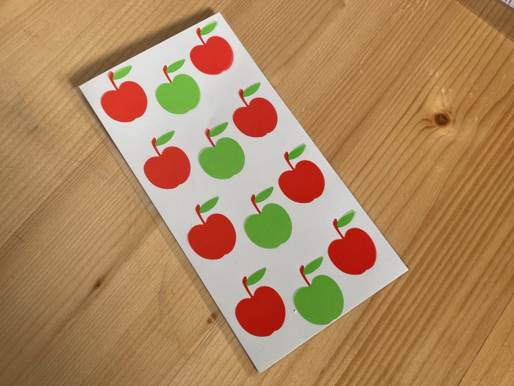 白いのは台紙だったのですね。半透明なりんごたちと青りんごたち。これはいい!さて、どこに貼ろう?いつ使おう?と考えてしまいます。そういった時間も楽しみですね!(自分だけ(笑))