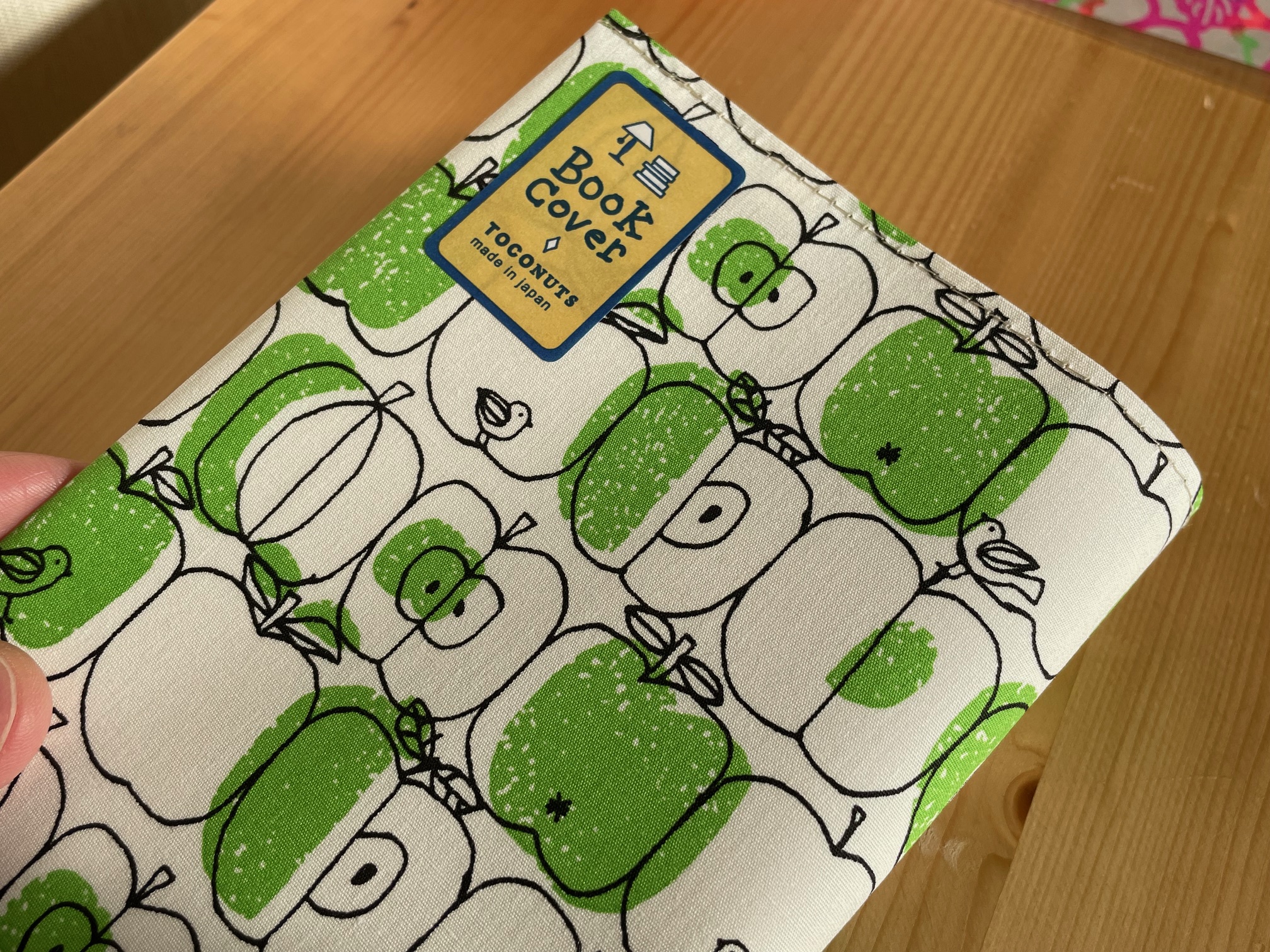 最後に紹介するのが、ブックカバーです。読書好きな人はきっとお気に入りのブックカバーを複数お持ちなのでしょう。ステッカーもりんごでしたが、こちらもりんごですね。すでに開封済です。